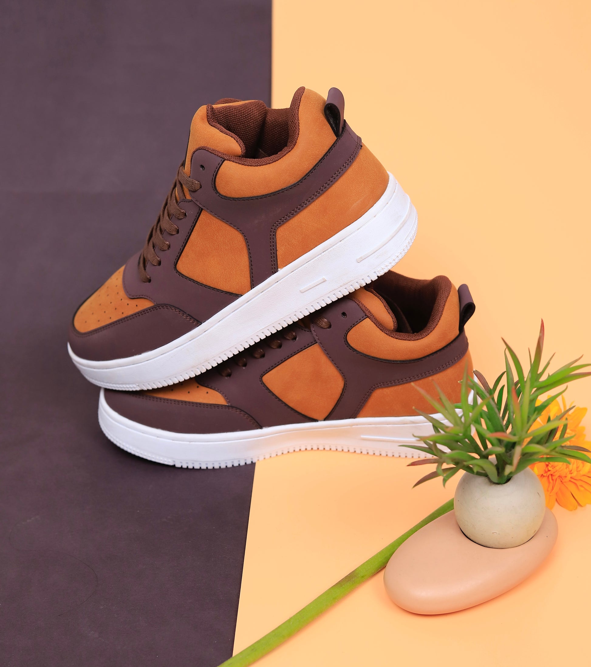 Expertly crafted from microfiber leather, these high top sneakers offer both style and functionality. The rich color combination adds a touch of sophistication to any outfit. Perfect for those looking for a versatile and durable shoe.